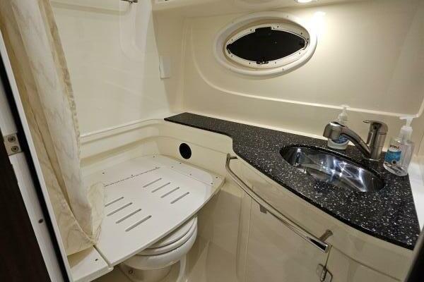 This Monterey 355 Sport Yachts has been enjoyed in the fresh waters of the Great Lakes, and has always been stored inside a heated building during the winter months. It's equipped with joystick controls for effortless handling and a generator.